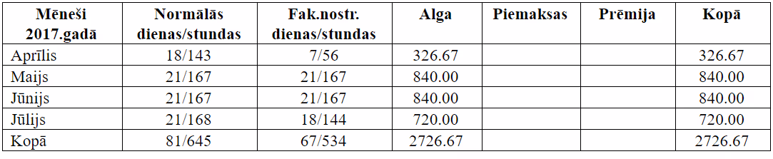 No 27.07. – 04.10.2017. bija 70 kalendārās dienas grūtniecības atvaļinājums